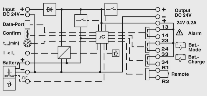 | Output voltage range | 19.2 V DC ... 27.6 V DC (UOUT = UBAT - 0,5 V DC) |